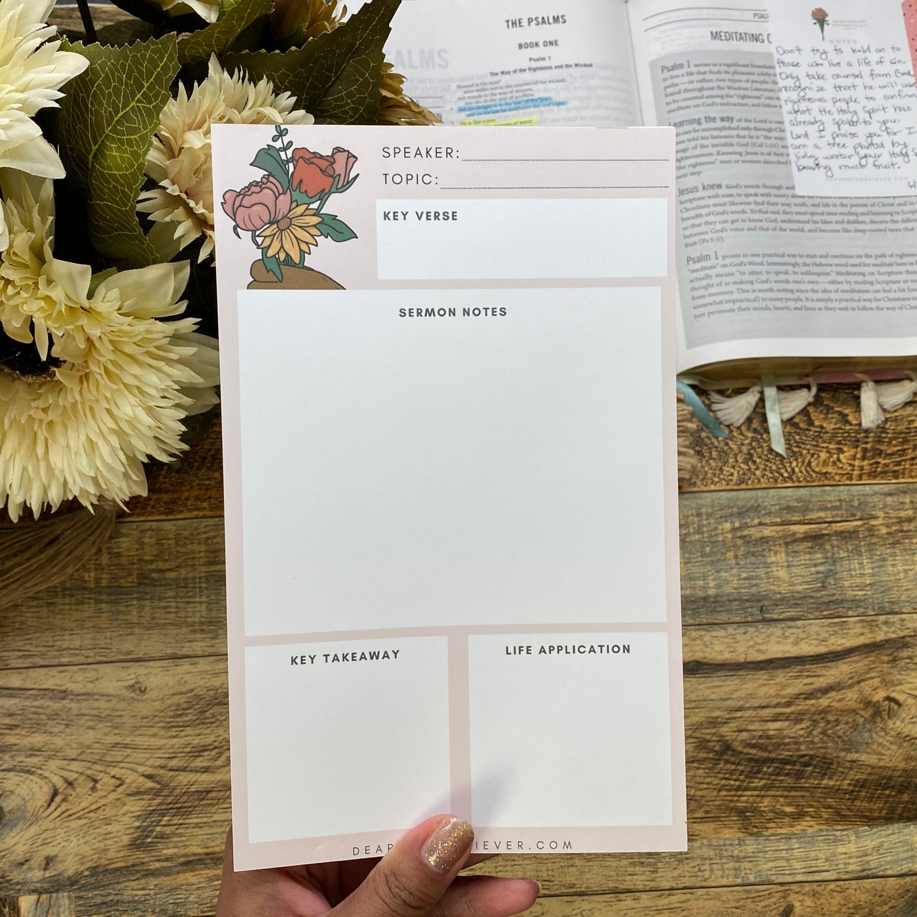Are you tired of losing your sermon notes on random scraps of paper? Do you want a beautiful, organized way to deepen your understanding of the weekly message and reflect on your spiritual journey? The Bloom & Believe Sermon Notepad is your perfect companion for church services, Bible study, and personal reflection.